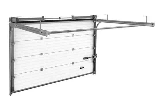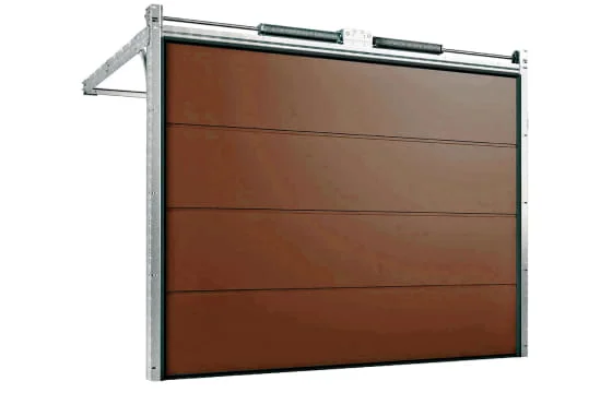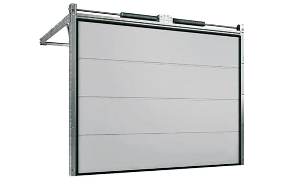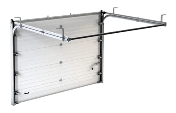 Самый распространенный вариант ворот. Для установки требуется притолока в 150 мм, так как пружины расположены над полотном. Не занижают проем в открытом положении.