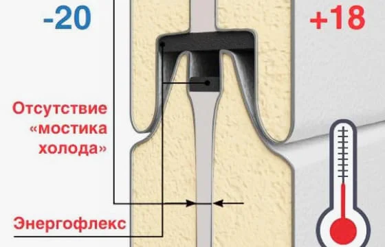 Наружный и внутренний стальные листы не соприкасаются. Ворота не промерзают в зимний период.