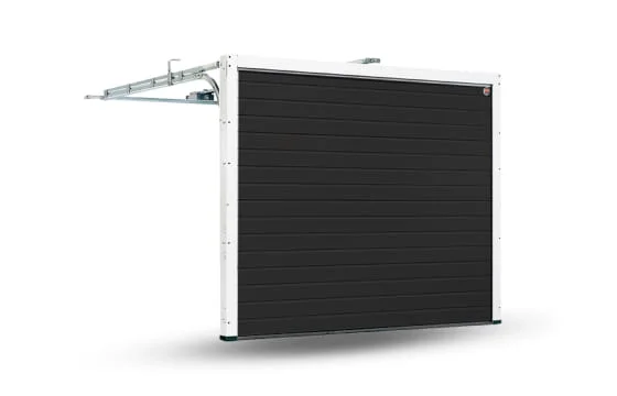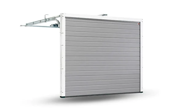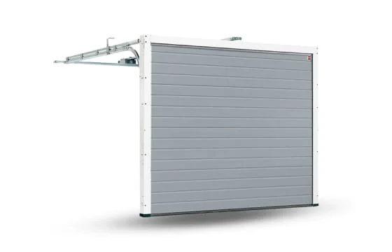 Отдельно стоящая дверь в гараж от ведущих производителей: Doorhan, Alutech, Hormann или собственного производства. Сохраняет тепло внутри помещения и продлевает срок эксплуатации ворот.