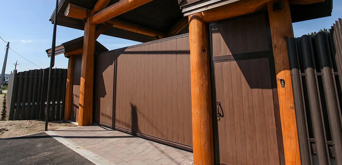 Оформить участок лучше в едином стиле, сочетая ворота, забор и калитку с одним заполнением.